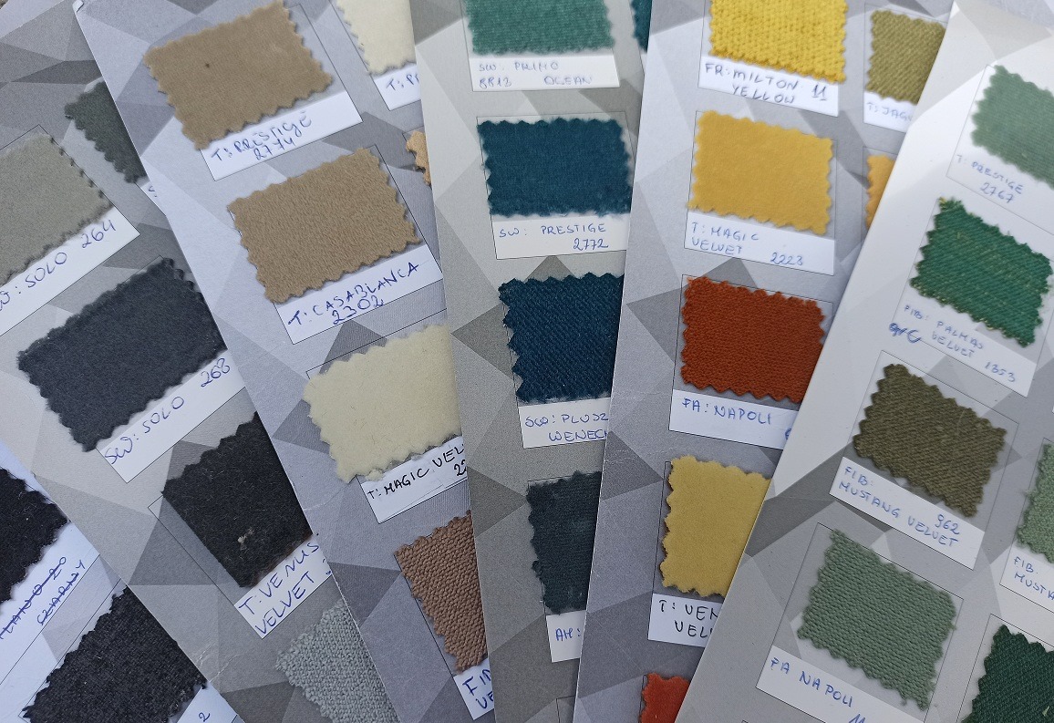 Próbniki tkanin tapicerskich, które wysyłamy do naszych klientów