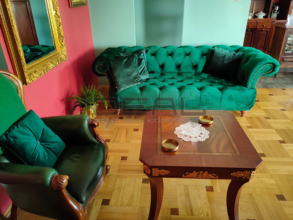 Dlaczego sofa chesterfield w kolorze butelkowej zieleni jest warta uwagi?