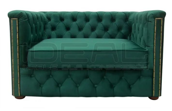 Pomimo niewielkich rozmiarów mogą na nim usiąść 2 osoby. Jest to wyjątkowy model, ponieważ wychodzimy w nim od sof chesterfield, które w najbardziej tradycyjnej wersji mają bardzo rozłożyste boki.