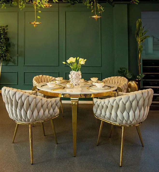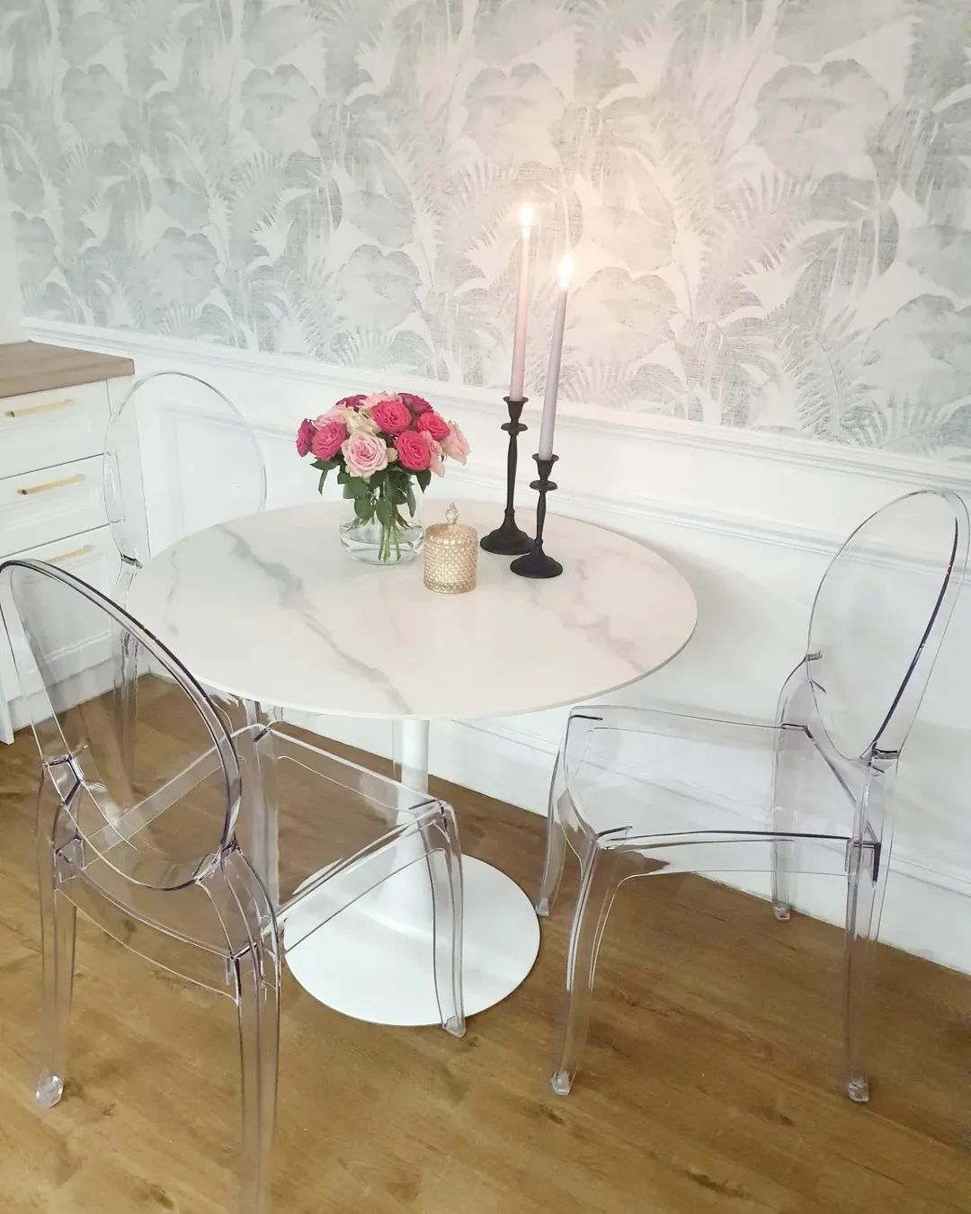 Stoły okrągłe z blatem wykonanym z marmuru lub nowoczesnego spieku kwarcowego to prawdziwy szczyt luksusu i wyrafinowanego designu we współczesnym wzornictwie wnętrz.