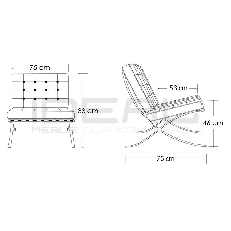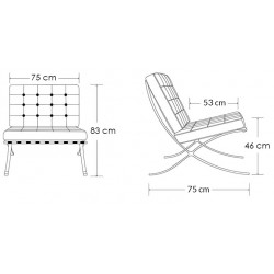 Uzupełnieniem fotela Barcelona jest Barcelona Sofa i Barcelona stolik, Podnóżek Barcelona. Fotel wykonany całkowicie ze skóry naturalnej. Prezentowany produkt jest inspirowany projektem fotela Barcelona nie jest jego kopią.
