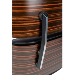 Siedzisko, oparcie oraz podłokietniki tapicerowane są naturalną włoską skórą. Korpus fotela został wykonany z giętej sklejki fornirowanej drewnem hebanowym