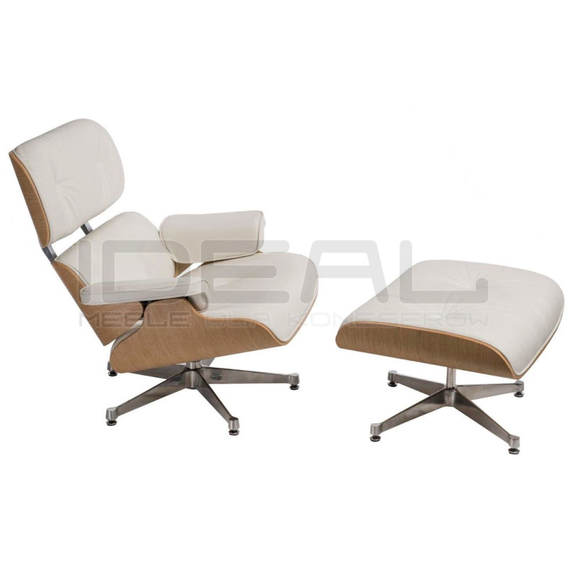 FOTEL Z PODNÓŻKIEM LOUNGE BIAŁY - SKLEJKA DĄB