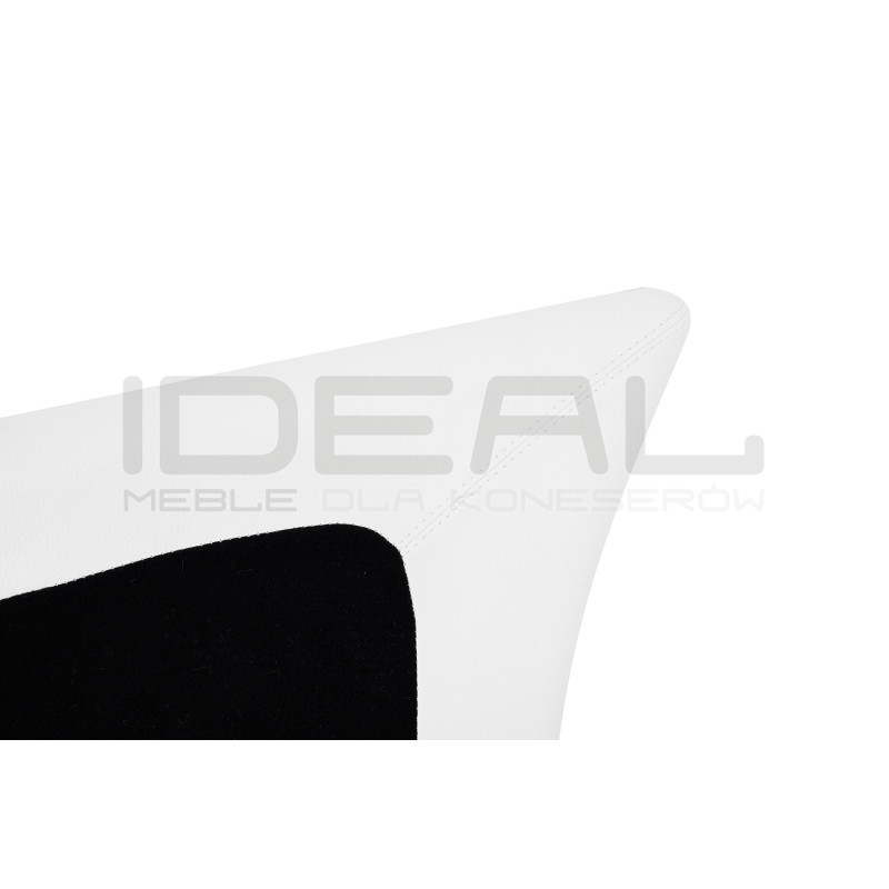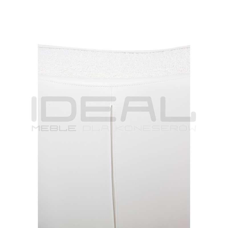 Metalowy korpus fotela tapicerowany ekoskórą w kolorze białym współgra z kolorystyką poduszek siedziska.