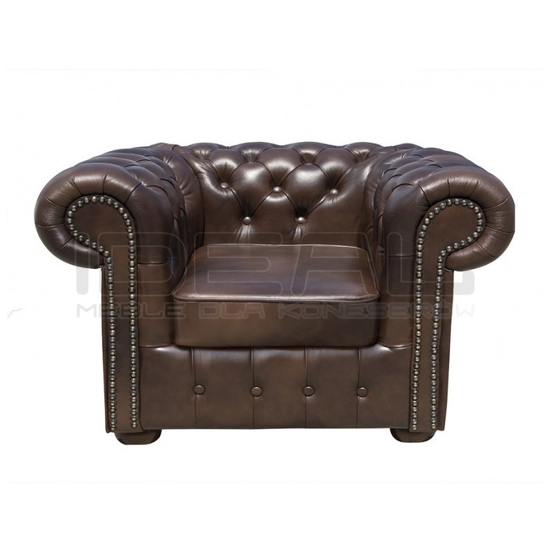 Jeżeli mamy na myśli klasyczny fotel chesterfield, wtedy od razu powinien nam się wyobrazić Fotel Chesterfield Classic w skórze naturalnej. Realizujemy zamówienia na  skórzane Fotele Chesterfield Classic oraz sofy chesterfield od wielu lat. Wspólnie dopasowujemy skórę, określamy pinezki w taśmie (lub ich brak) czy wybarwienie nóg.