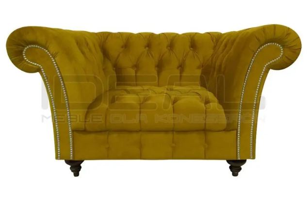 Fotel Elba to przepięknie pikowany fotel wykonany w kanonie chesterfield, zachowany w stylistyce glamour. Przepiękne błyszczące złote lub srebrne pinezki dodają jemu uroku. Fotel posiada drewniane nogi, które na życzenie klienta mogą być metalowe. Zdecydowane kolory fotela będą stanowiły miły akcent we wnętrzu.