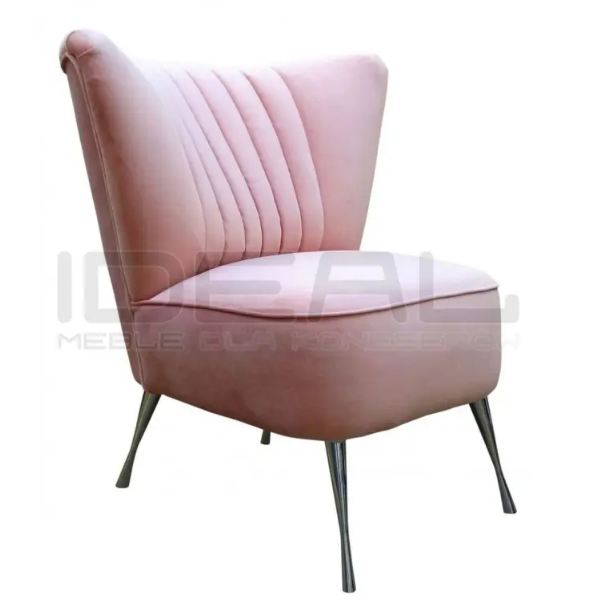Fotel Glamour Frances Tun nie posiada podłokietników dzięki czemu nie zajmuje zbyt wiele miejsca, a szerokie siedzisko zapewnia komfort w czasie siedzenia.