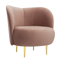 Fotel Aldo dostępny jest w wielu ciekawych tkaninach (pluszach, welurach, tkaninach lub boucle) i kolorach, również w modnym kolorze Pantone 2025 mocha mousse. Do wyboru są również nogi: klasyczne złoto lub ponadczasowa czerń.