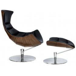 Fotel designerski HOMMER z podnóżkiem czarny z orzechowym drewnem to wyjątkowe siedzisko, które jest niewątpliwie dekoracja salonu, czy gabinetu.