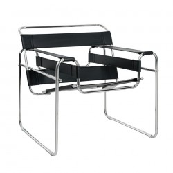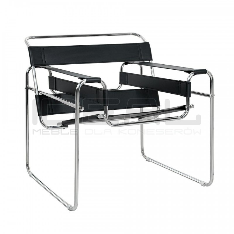 Fotel designerski - fotel Wassily w stylu bauhaus jest to pierwszy metalowy mebel. Tak powiedział Marcel Breuer po zaprojektowaniu tego krzesła z rowerowych rurek w 1925 roku. Jest to pierwszy fotel do produkcji którego użyto tego materiału. Między rurkami rozciągnięta jest twarda skóra naturalna. Fotel był włoskiej produkcji, stelaż chromowany, do produkcji wykorzystano również skórę naturalną w kolorze czarnym.