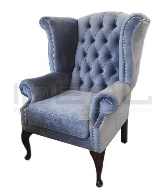Fotel Uszak Chesterfield Lord Regent to wspaniała kombinacja klasyki, elegancji i luksusu. Zainspirowany tradycyjnym stylem chesterfield, ten fotel zachwyca swoją wyjątkową formą uszaka, głęboko pikowanym oparciem oraz charakterystycznymi wysokimi, wygiętymi nóżkami w stylu Ludwik. Dodatkowo, fotel został ozdobiony podłokietnikami w stylu windsor oraz wygiętymi bokami oparcia, znacznie wzbogacając jego sylwetkę.