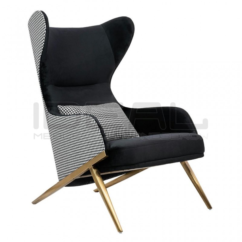 Fotel Uszak glamour HAMPTON VELVET pepitka biało - czarna