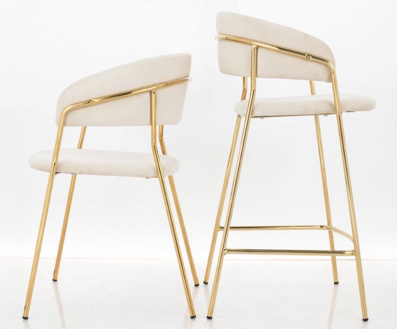 Krzesło Margo to hoker dostępny w różnych kolorach zarówno ze złotą jak i srebrną podstawą.