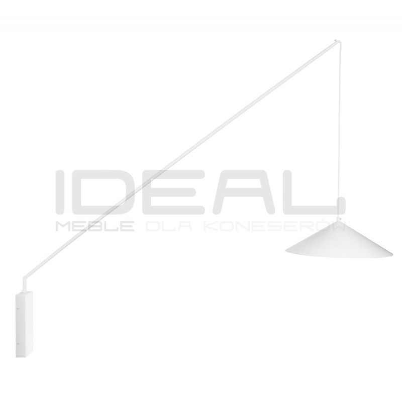 Największą zaletą Kinkietu Swing  jest jej długie ramię, z którego zwisa abażur w kształcie stożka. Dzięki temu kinkietowi możemy otrzymać lampę ścienną spełniającą zadania lampy wiszącej. Lampa działa trochę jak wędka - mocowanie mamy do ściany, ale nasz abażur zwisa z góry, jak przy lampach sufitowych. Długie ramię kinkietu pozwala na regulację wysokości abażuru, dzięki czemu możemy dopasować oświetlenie do naszych indywidualnych potrzeb. Abażur kinkietu SWING zwieszono na metalowym ramieniu, które można obracać na boki.