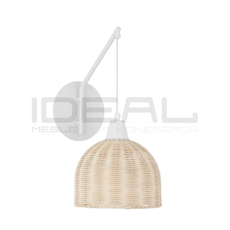 Kinkiet boho Summer to doskonały przykład harmonii między naturą a designem. Jego piękny pleciony rattanowy klosz stanowi kwintesencję przyjemności wizualnej, oddając ciepło i naturalność materiału, który został mistrzowsko ułożony w delikatne wzory. Umieszczony na białym stelażu, który elegancko przylega do ściany, kinkiet ten nie tylko oświetla pomieszczenie, ale również dodaje mu wyjątkowego uroku.