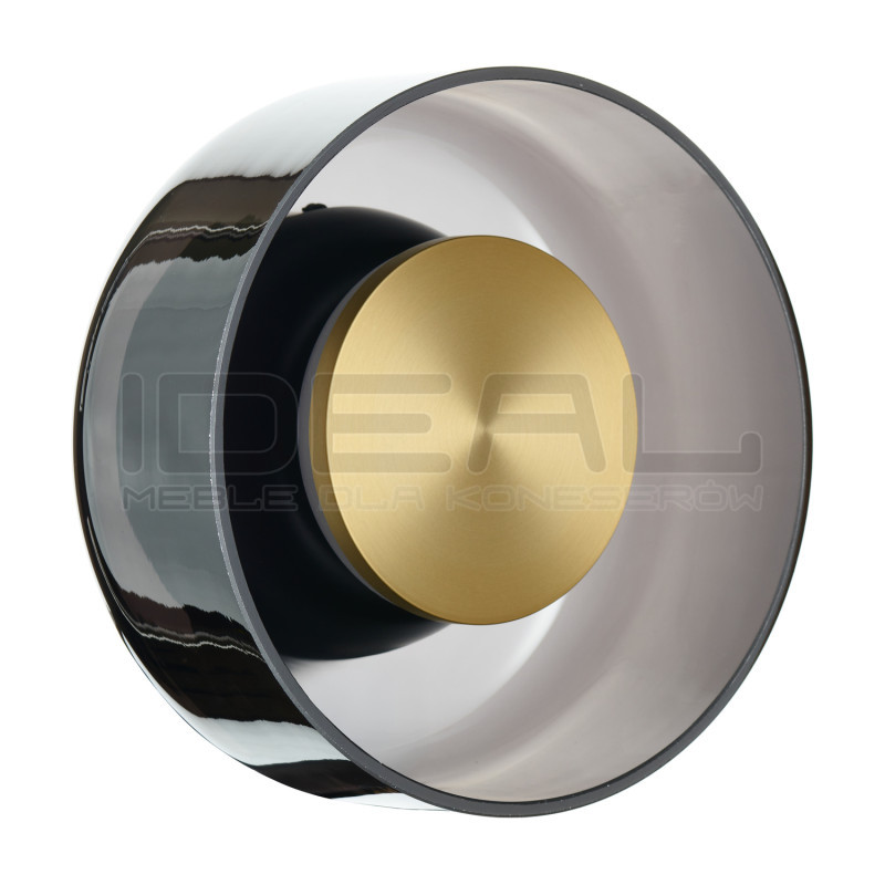 Kinkiet Donut to nowoczesna lampa ścienna, której największym atutem jest szklana konstrukcja w eleganckim szarym kolorze oraz centralny element dekoracyjny w czerni lub złocie. Szare szkło tworzy zmienne odcienie w zależności od światła, dodając wnętrzu niepowtarzalnego charakteru.