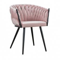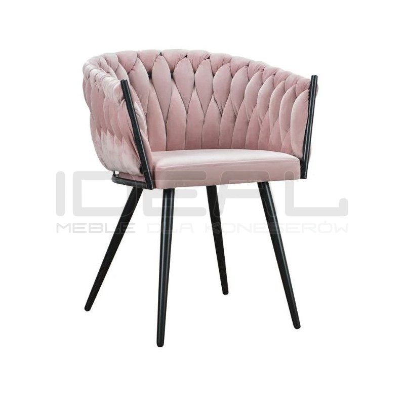 Krzesło Glamour Larissa z czarną podstawą posiada wygodne, doskonale wyprofilowane oparcie i podłokietniki. Jego dopracowany kształt zapewnia wygodę siedzenia i dobre podparcie pleców. Metalowe, czarne nogi wykonane są w stylu glamour.