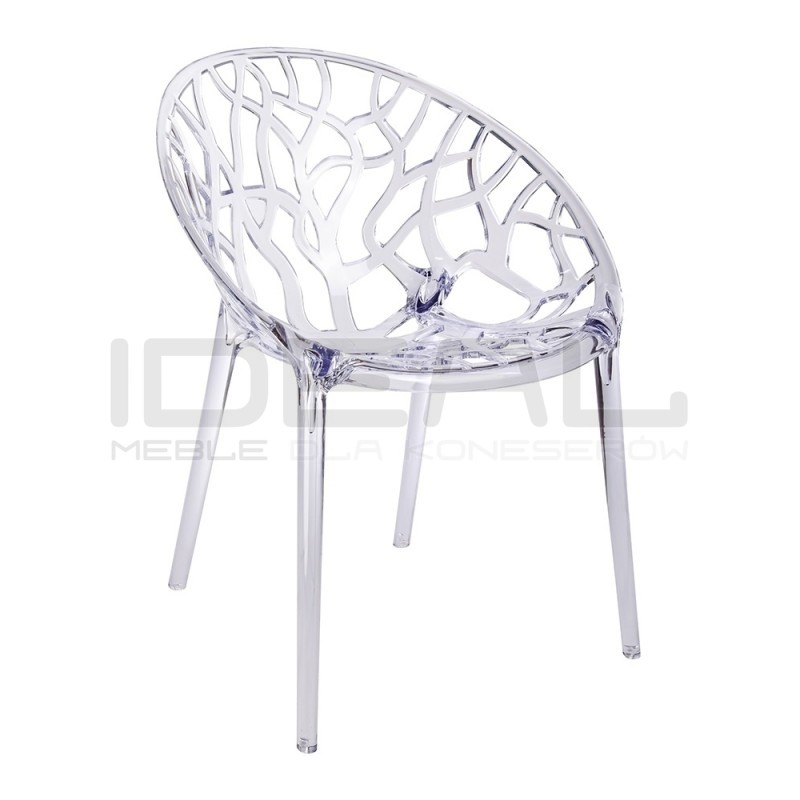 Krzesło transparentne KORAL w całości zostało wykonane z transparentnego poliwęglanu. poliwęglan jest tworzywem lekkim i jednocześnie wytrzymałym.