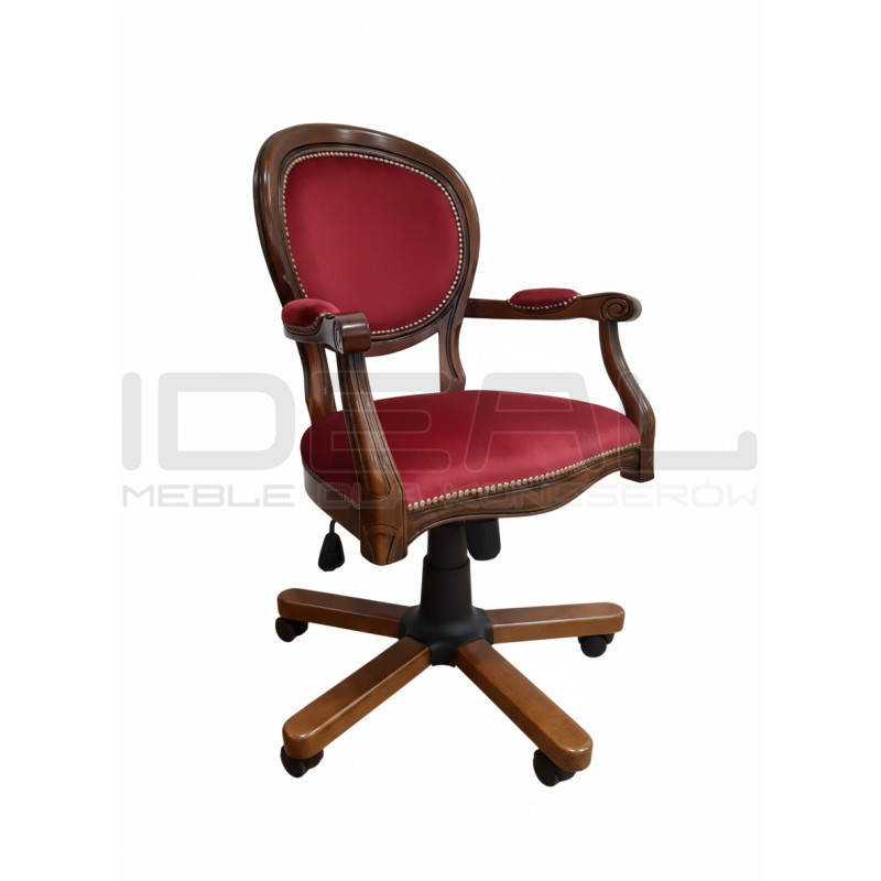 Krzesło biurowe w stylu kolonialnym BIBURY zachwyca detalami: profilowanymi podłokietnikami oraz eleganckim oparciem o medalionowym kształcie, które nadaje całości reprezentacyjnego, gabinetowego charakteru. To idealny wybór do klasycznego biura, domowego gabinetu, kancelarii czy stylowego home office.