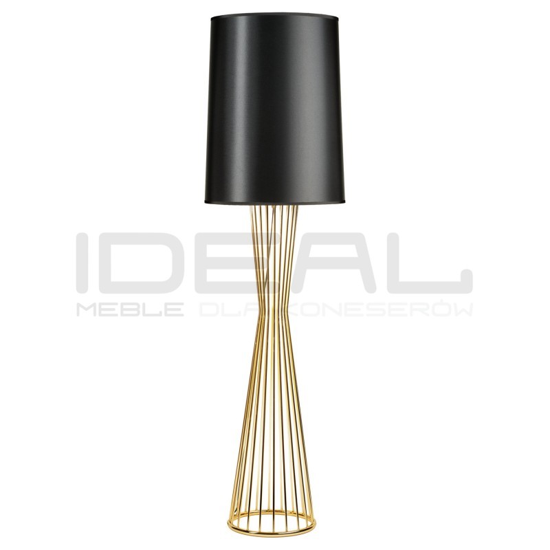 Lampa podłogowa glamour Filo Holmes złota to klasyczna dwukolorowa lampa podłogowa FILO-1 Holmes o luksusowym i eleganckim wzornictwie. Połączenie złota z czernią jest ponadczasową, stylową i modną kompozycją, która zachwyci zwolenników ponadczasowego designu. Stabilna podstawa lampy podłogowej glamour Filo Holmes wykonana została z metalu w kolorze błyszczącego złota. Czarny abażur z satynowej tkaniny wykończono lamówką w tym samym odcieniu.