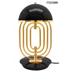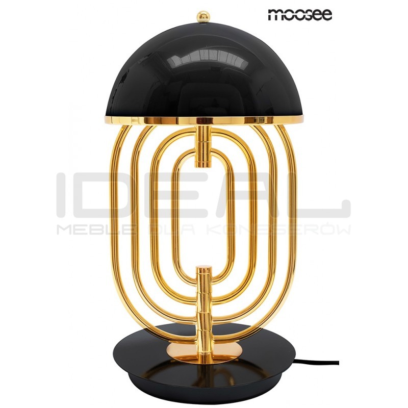 Lampa stołowa Bottega złota została wykonana ze stali w kolorze złotym, a źródło światła skrywane jest pod odpowiednio białym lub czarnym kloszem.