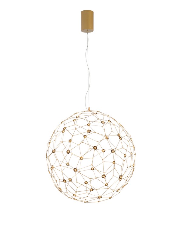 Lampa wisząca Stellar Galaxy 60 złotej to prawdziwy klejnot wśród lamp designerskich. Jej średnica wynosząca 60 cm,to połączenie metalu z Źródłem światła Led tworzy niepowtarzalny efekt świetlny. Delikatna forma geometrycznej siatki, wykonanej z metalu, wpisuje się w najnowsze trendy aranżacyjne, doskonale uzupełniając nowoczesne wnętrza.