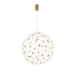 Lampa Stellar GALAXY 80 złotej to prawdziwy klejnot wśród lamp wiszących. Jej imponująca średnica 80 cm, wraz z rozmieszczonymi na metalowej siatce modułami Led, tworzy niepowtarzalny, niesamowicie mocny blask, który wzbudza podziw i zachwyt.
