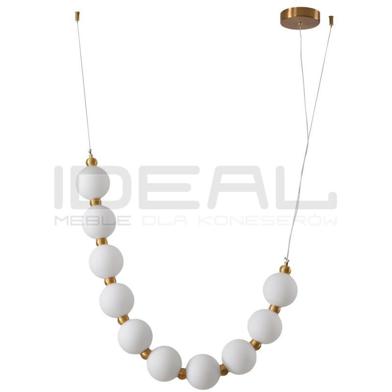 Inspirowana naszyjnikiem z białych pereł, łączy subtelność szkła z luksusowymi metalowymi elementami. Składa się z 10 szklanych kloszy rozdzielonych dekoracyjnymi kulami w kolorze szczotkowanego mosiądzu, co nadaje jej niepowtarzalny charakter. Zwieńczeniem konstrukcji jest elegancka, okrągła rozeta.