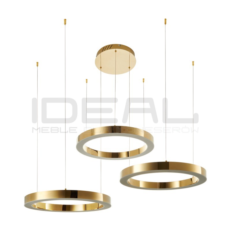 Lampa wisząca Ring Circle 60+60+60 LED złota w połysku. Błyszczący połysk złota przyciąga spojrzenia, nadając jednocześnie pomieszczeniu wyjątkowego charakteru.