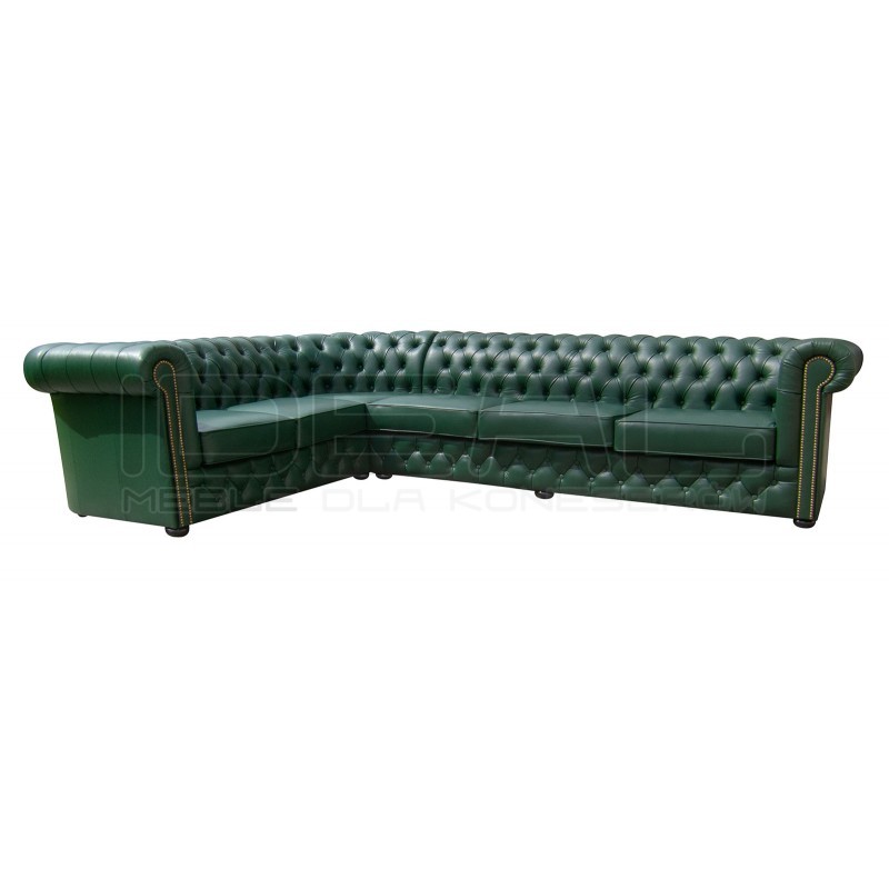 Narożnik Chesterfield Normal w skórze naturalnej Tornado 1013 butelkowa zieleń