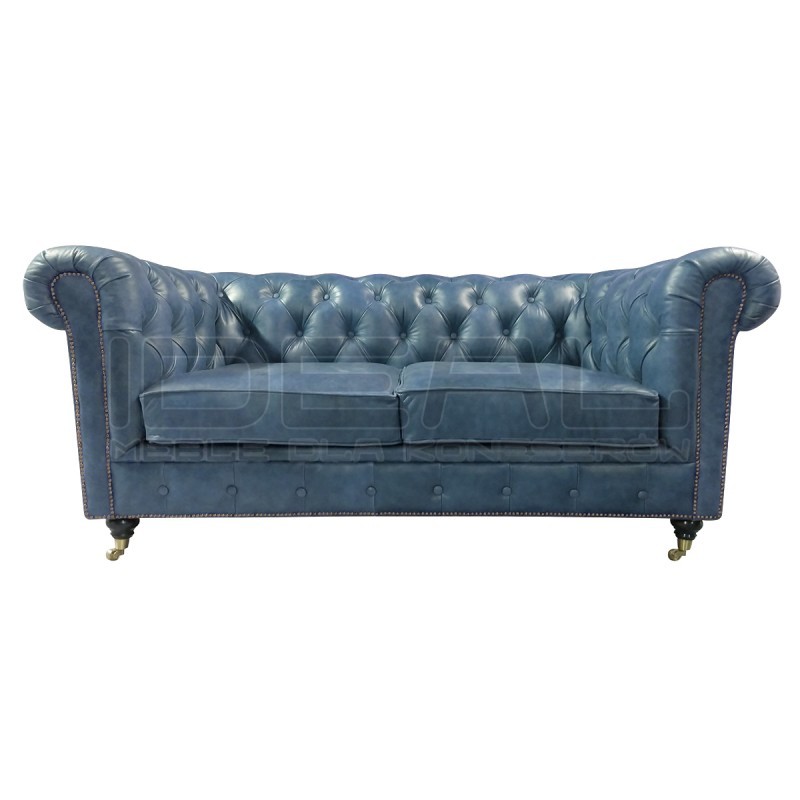Sofa Chesterfield Swan na kółeczkach skóra 2 os.