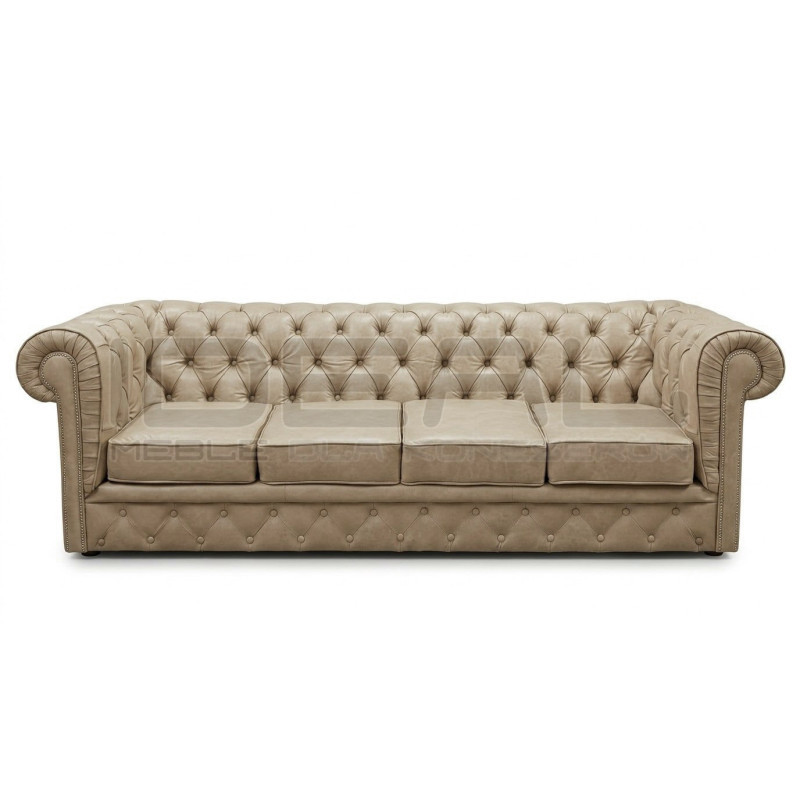 Sofa Chesterfield Normal w skórze 4 osobowa charakteryzuje się wyjątkową elegancją, zaokrąglonymi liniami, bogactwem wypełnienia oraz niepowtarzalnym komfortem użytkowania. Normal to klasyczny model chesterfielda z licznymi możliwościami modyfikacji, co sprawia, że każdy może dopasować je do swojego gustu i oczekiwań.