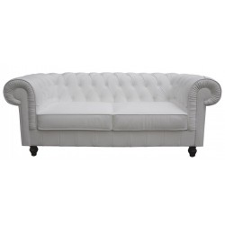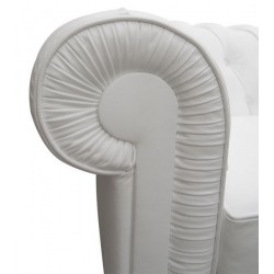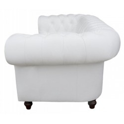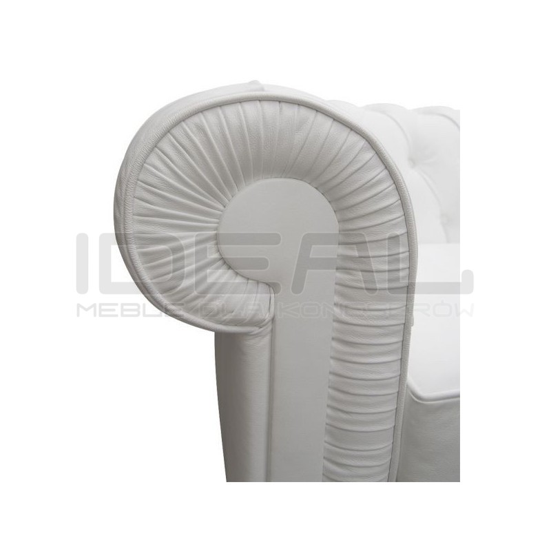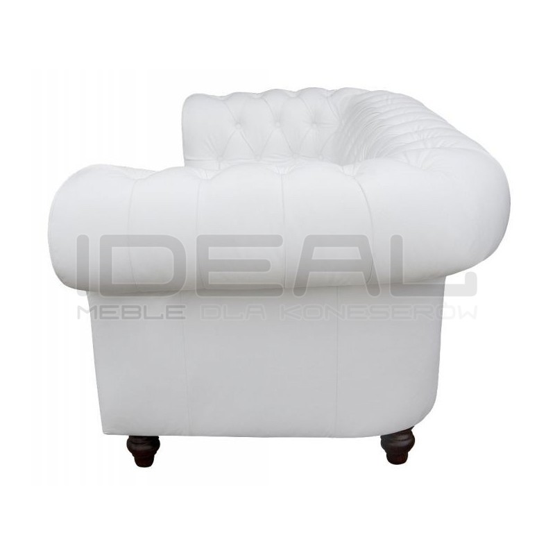 3 osobowa Sofa Chesterfield Canon Skóra z ozdobnie wykończonymi podłokietnikami. Skóra naturalna ułożona w rzadką harmonijkę oraz skórzana lamówka podkreślająca kształt podłokietnika w formie baranka.