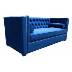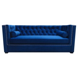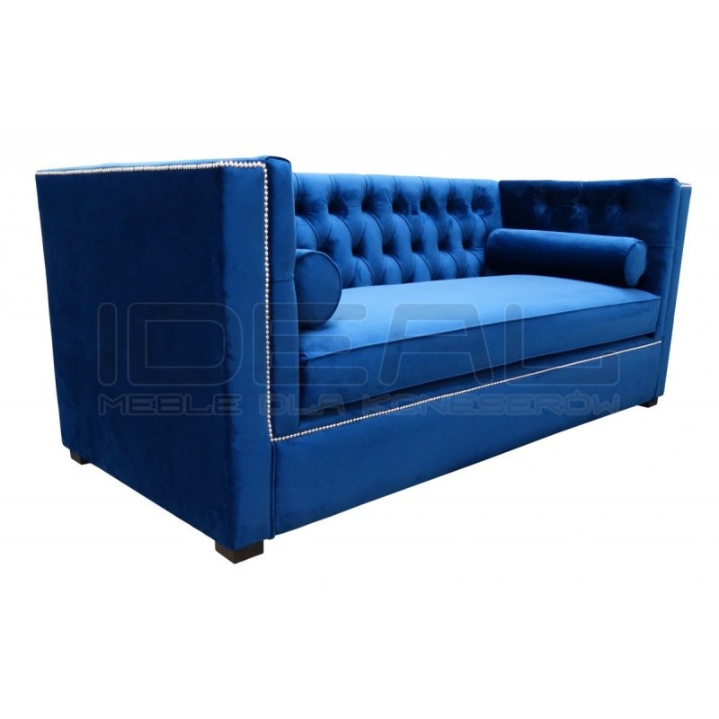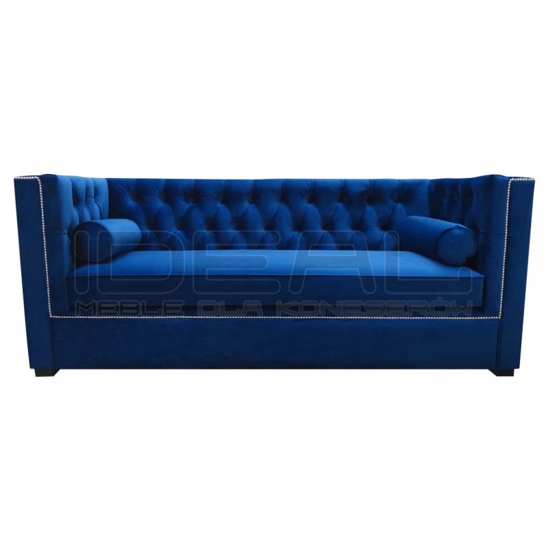 Sofa Chesterfield Granatowa London Plus 3 os. osobowa plusz, materiał, tkanina może zostać wykonana w dowolnym kolorze.