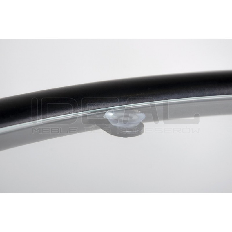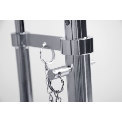 Nasz stolik wykonany jest ze stali polerowanej na wysoki połysk, a blat wykonany z transparentnego hartowanego szkła. Ponadto posiada regulowaną wysokość blatu.