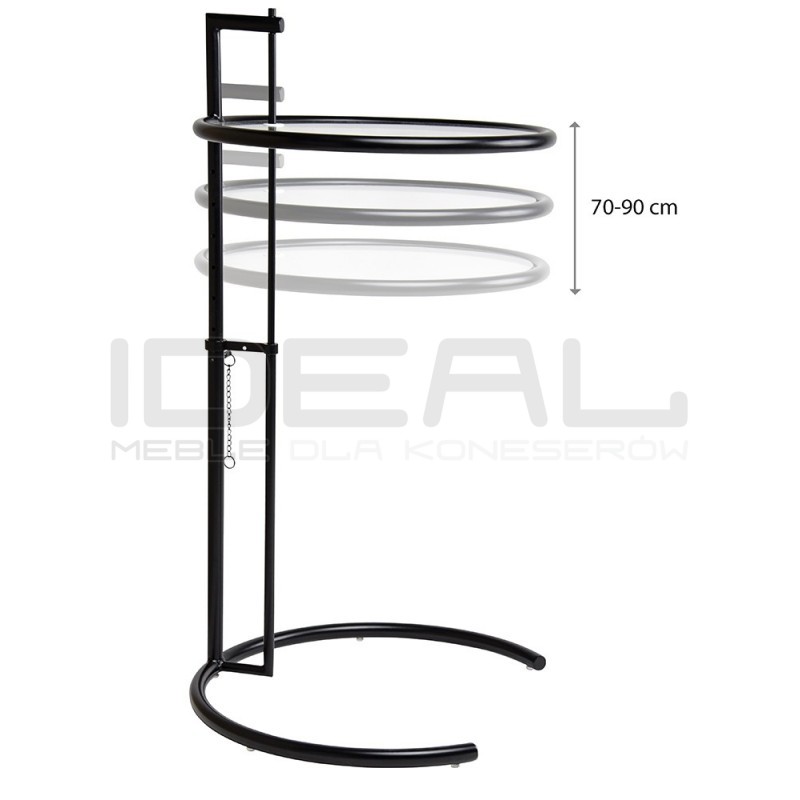 Stolik został zaprojektowany w 1927 roku. Początkowo stał w pokoju, w mieszkaniu projektantki. Stolik można regulować na wysokość. Baza stolika jest chromowana a blat szklany. Prezentowany produkt jest inspirowany projektem E.Gray. Może być użytkowany jako stolik kawowy lub stolik pomocniczy.