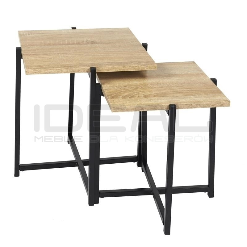 Stolik origami CLOVE składa się z 2 stolików o różnych rozmiarach o prostym, klasycznym charakterze. Blat Stolików Origami został wykonany z płyty MDF, zaś podstawa jest metalowa, malowana proszkowo na kolor czarny. Może być użytkowany jako stolik kawowy lub stolik pomocniczy.
