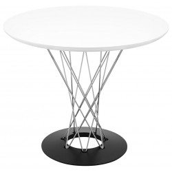 Stół Twist występuje w dwóch rozmiarach. Blat wykonany z MDF-u w kolorze białym lub czarnym.